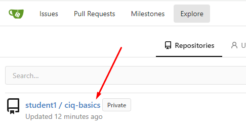 If you want to browse the server, open the gitea link, click the Explore option in the top left, use the username / password from the lab screen: