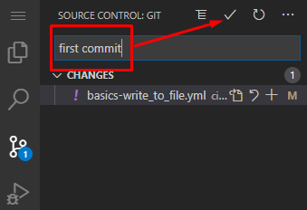 From here you want to add a commit message (what message will be logged to the git server with this push), and click the commit button (looks like a check mark):