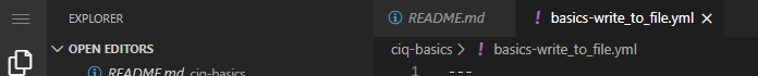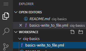 In VSCode, create a new file named, create a file named basics-write_to_file.yml.