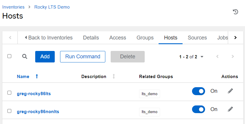 The hosts selected here will be basics-host. It is a Rocky 9 Virtual Machine (VM) provisioned specifically to test with.