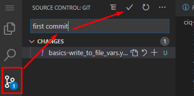 Now that the playbook has been created, jump to the Source Control menu, add a comment, commit, and push:
