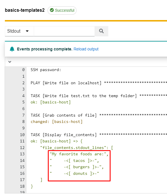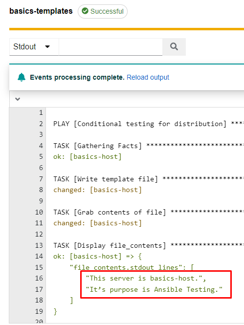Everything here you’ve seen already, save for the task highlighted in green. Here we are using the template module. As you can see I simply specify the source template file and the destination file that will be created or modified on the host system… and that’s it.