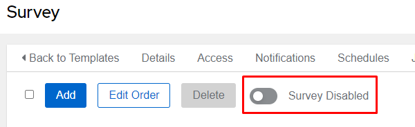 While my survey is complete, it’s not currently being utilized. I have to click the Survey Disabled radio button to enable it:
