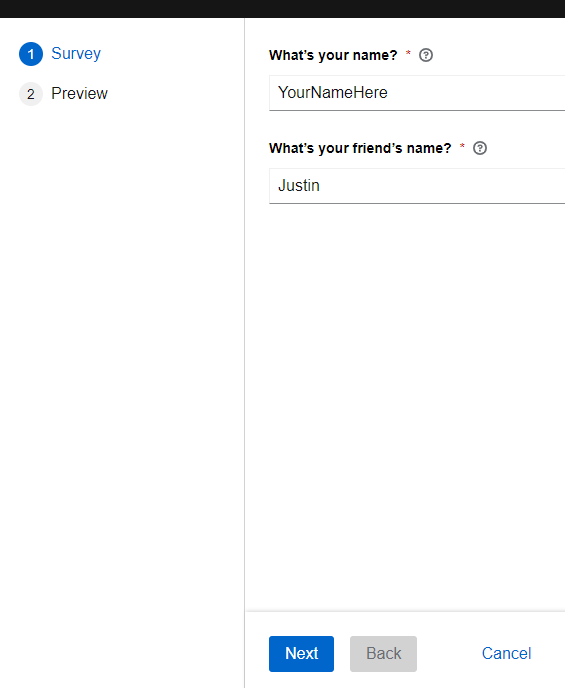 Now in the Preview section, we can see the variables I’ve included in my survey: