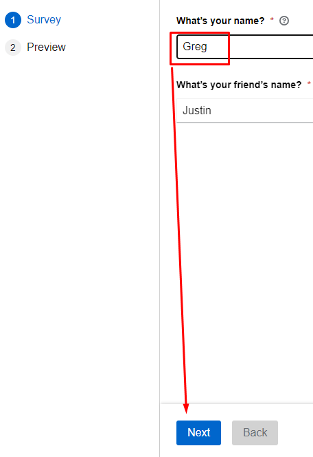 I’ll set my name, my friend’s name, and click Next. This will move me to a Preview screen: