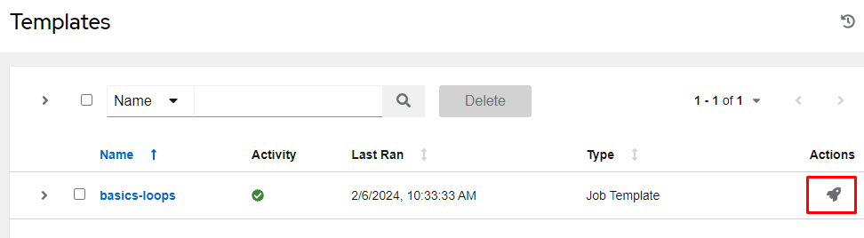 If, however, you browse to the Templates section you will see the basics-loop job ready for us to launch. Click the rocket ship next to it to ensure you can execute it: