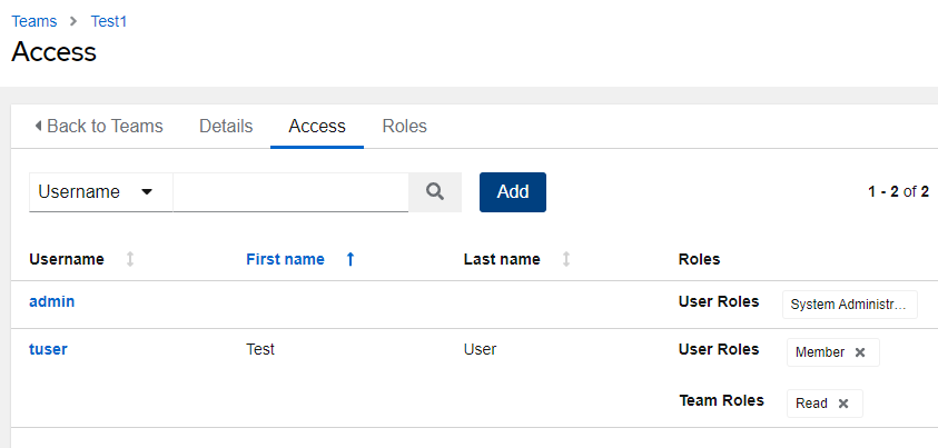 I’ll now add my test user to the group by clicking on the Access tab and clicking Add: